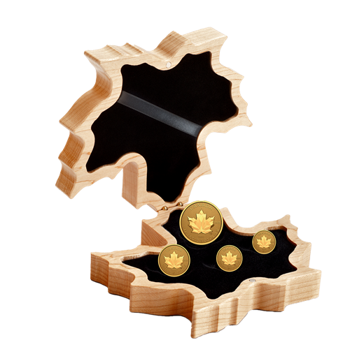 Your four-coin set comes packaged in a maple leaf-shaped case crafted from hard maple—the perfect complement to the coin design.