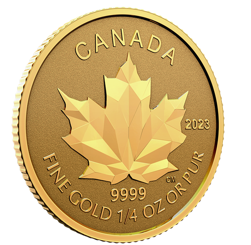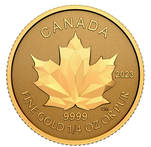 Your four coins share the same reverse design by Calder Moore and feature a stylized depiction of a sugar maple (Acer saccharum) leaf. Each maple leaf is composed of intricately sculpted geometric shapes that give the Canadian emblem a more multi-faceted appearance; the engraved shapes also play with light and shadow in order to convey a sense of movement. On all four coins, the reverse includes the words “CANADA”, the coin’s purity and weight, and the year “2023”. Each obverse features the effigy of Her Majesty Queen Elizabeth II by Susanna Blunt.