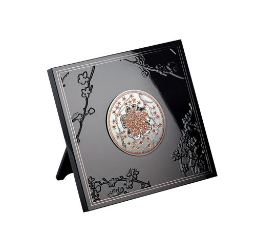 - Features a meticulously engraved cherry blossom design that blurs the line between coin and jewellery art.