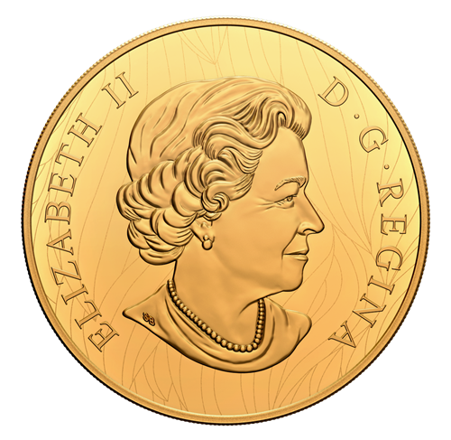 The coin’s reverse features an engraved rendering of Snowy Owl on Driftwood by Canadian wildlife artist Robert Bateman. A snowy owl (Bubo scandiacus) stares into the distance while regally perched on a pile of driftwood on the edge of a sandy shore. The reverse includes the text “CANADA 2022”, the denomination of “2500 DOLLARS” and an engraved reproduction of the artist’s signature. The obverse features a field pattern and the effigy of Her Majesty Queen Elizabeth II by Susanna Blunt.