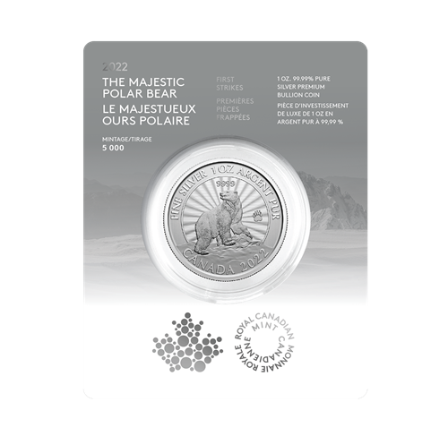 The Majestic Polar Bear is the first in a new line of Premium Bullion coins in special packaging that are produced with a guaranteed weight and “four nines” (99.99%) purity, and issued in an easy-to-collect format. This uncirculated bullion coin is a beautiful keepsake that has been designed for collectors and precious metal buyers alike, but the First Strikes edition brings an added dimension of exclusivity: it was struck during the first day of production.