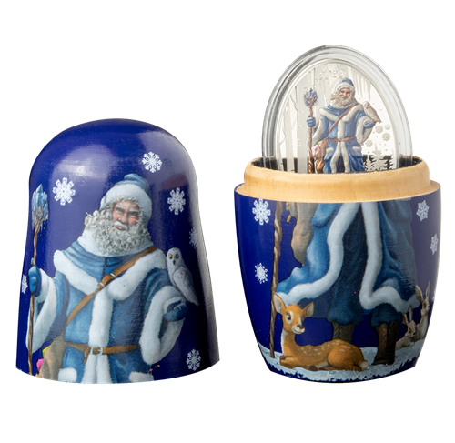 Your beautiful 1 oz. pure silver coin is dedicated to the Russian version of Santa Claus.