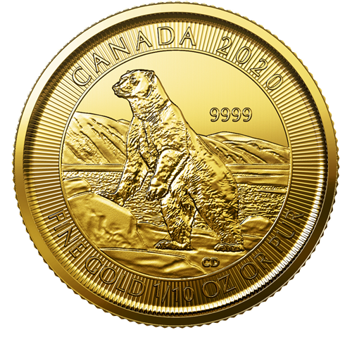 2020 $5 1/10 oz. 99.99% Pure Gold Coin - Polar Bear (Bullion)