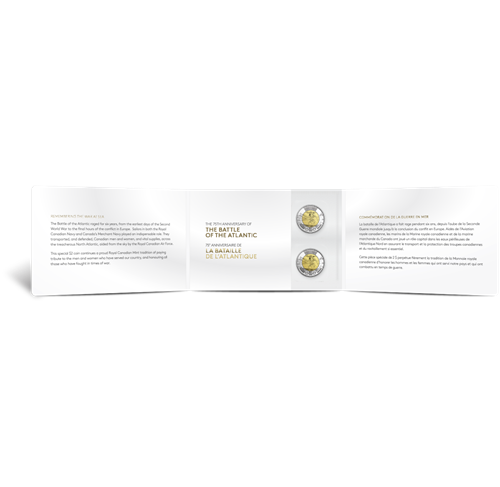 The Royal Canadian Mint is proud to honour the courage and sacrifice of those who served in the Battle of the Atlantic.With this special 75th Anniversary of theBattle of the Atlantic $2 coin, we continue our long tradition of paying tribute to the men and women who have served our country.