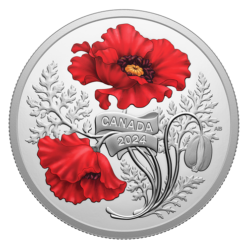 Each year on November 11, Canada pauses to honour all who serve or have served our country in times of war and peace, and our annual Remembrance Day coin keeps that spirit of gratitude and remembrance alive year-round. The 2024 edition presents a stirring visual metaphor for the more than 2,300,000 who served in Canada’s military throughout its history, including the more than 118,000 who ultimately gave their lives. Its reverse shows the red-petalled flower of Remembrance in various stages of bloom, from the poppy that proudly stands tall as a symbol of those who serve or have served, to the drooping one that pays respect to our fallen—those who are gone, but whose sacrifices will not be forgotten.