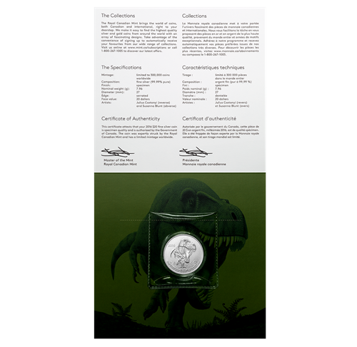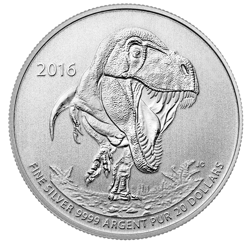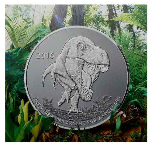 Pièce de 20 $ pour 20 $ en argent fin – Tyrannosaurus rex