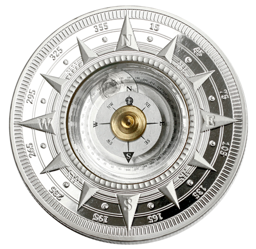Pièce-boussole de 2,5 oz en argent pur – Les grands espaces