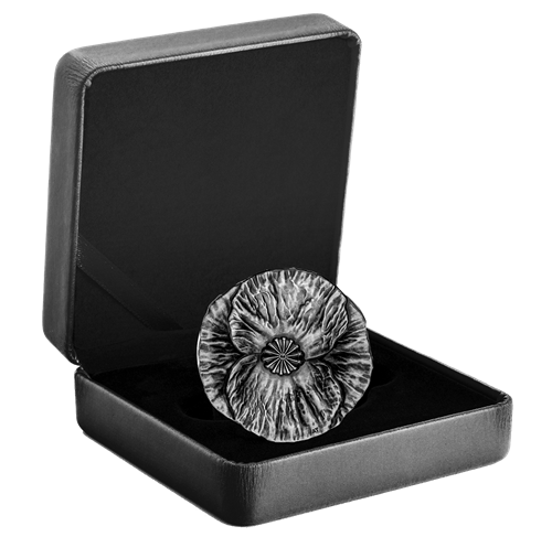 Notre hommage 2020 au jour du Souvenir prend la forme d'un véritable coquelicot, rappelant l'inspiration du poème de guerre In FlandersFields (Au champ d'honneur). Cette pièce représente la fleur la plus réaliste que nous ayons jamais créée en argentpur à 99,99 %. Son revers est soigneusement sculpté de façon à rendre bon nombre des particularités botaniques du coquelicot, des pétales qui se courbent vers l'extérieur jusqu'au verticille central. Un fini antique rehausse également chaque ridule, courbure et repli.Cette fleur représente la gratitude d'une nation envers ceux qui ont combattu, ceux qui ont péri, ceux qui continuentde servir leur patrie, et tous les proches qui lesont soutenus au fil des ans.