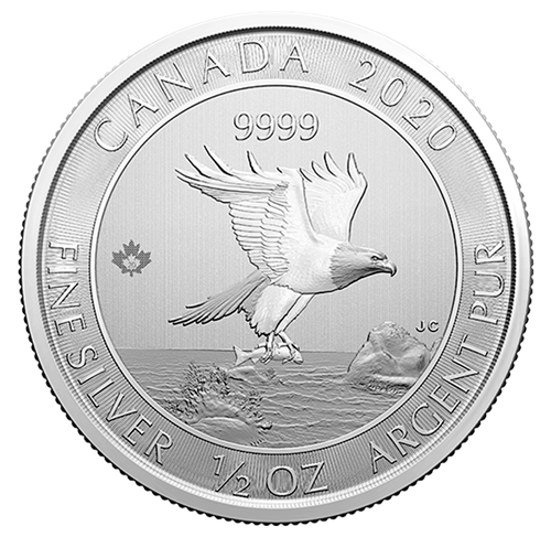 Pièce de 2 $ de 1/2 oz en argent pur à 99,99 % 2020 - Aigle (pièce d'investissement)