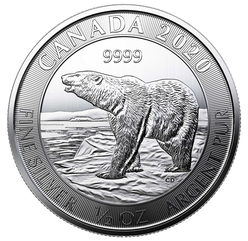 Pièce de 2 $ de 1/2 oz en argent pur à 99,99 % 2020 - Ours polaire (pièce d'investissement)