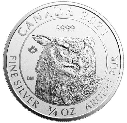 Pièce de 2 $ de ¾ oz en argent pur à 99,99 % 2021 – grand-duc d'amérique (pièce d'investissement)
