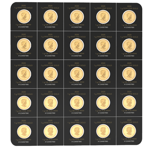- Chacune des 25 pièces est frappée dans 1 gramme d'or pur à 99,99 % et possède un numéro de série distinct.