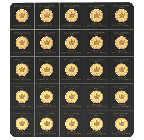 - Emballage-coque divisible contenant 25 pièces Feuille d'érable en or de 1 gramme ayant cours légal.